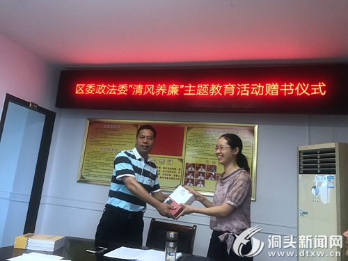 动员会上,区委政法委还举行了“清风养廉”主题教育活动赠书仪式,要求所有干部职工坚持原原本本读经典,做到真读真懂真学真用,每人要撰写一篇读书心得,做到有学习、有感悟、有交流。