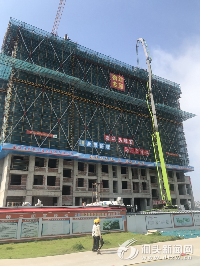 洞头网讯(通讯员 杨晨灵)8月24日,元觉街道旧村搬迁安置房工程(元觉一期安置房)一号楼结顶。
